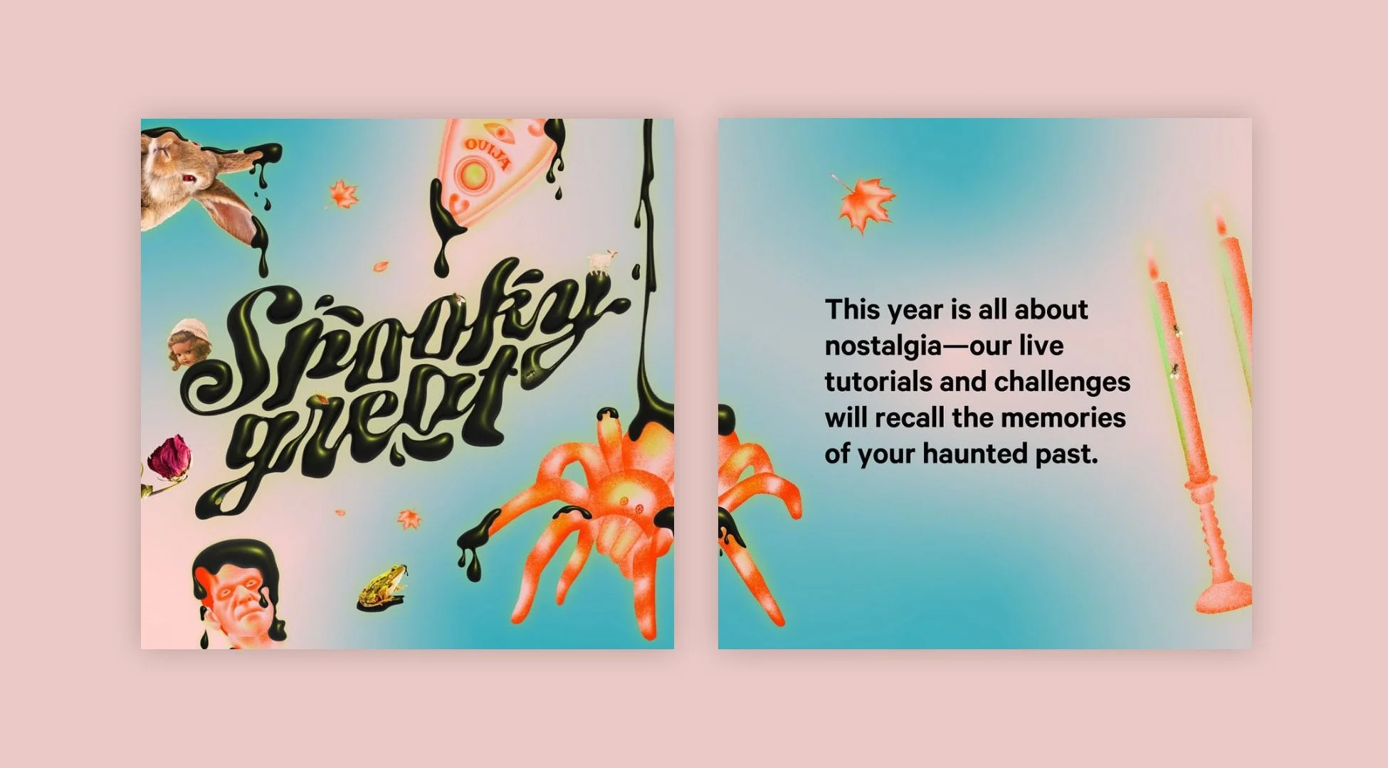 Inspired by classic and vintage Halloween, I created a “soft, but creepy” visual identity by using a combination of illustrations and stock imagery with soft, neon photo treatments collaged in an off-putting arrangement to add to the spookiness.